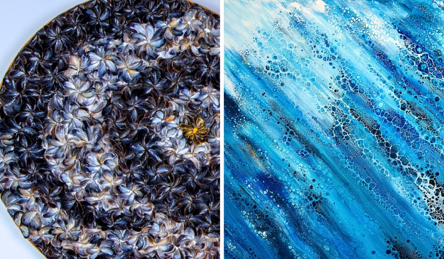 “My painting is raw and passionate. I love experimenting with different techniques and materials, but fluid art is the one I’m most passionate about. I enjoy the controlled chaos of the creative process and the unexpected character of the final results.”